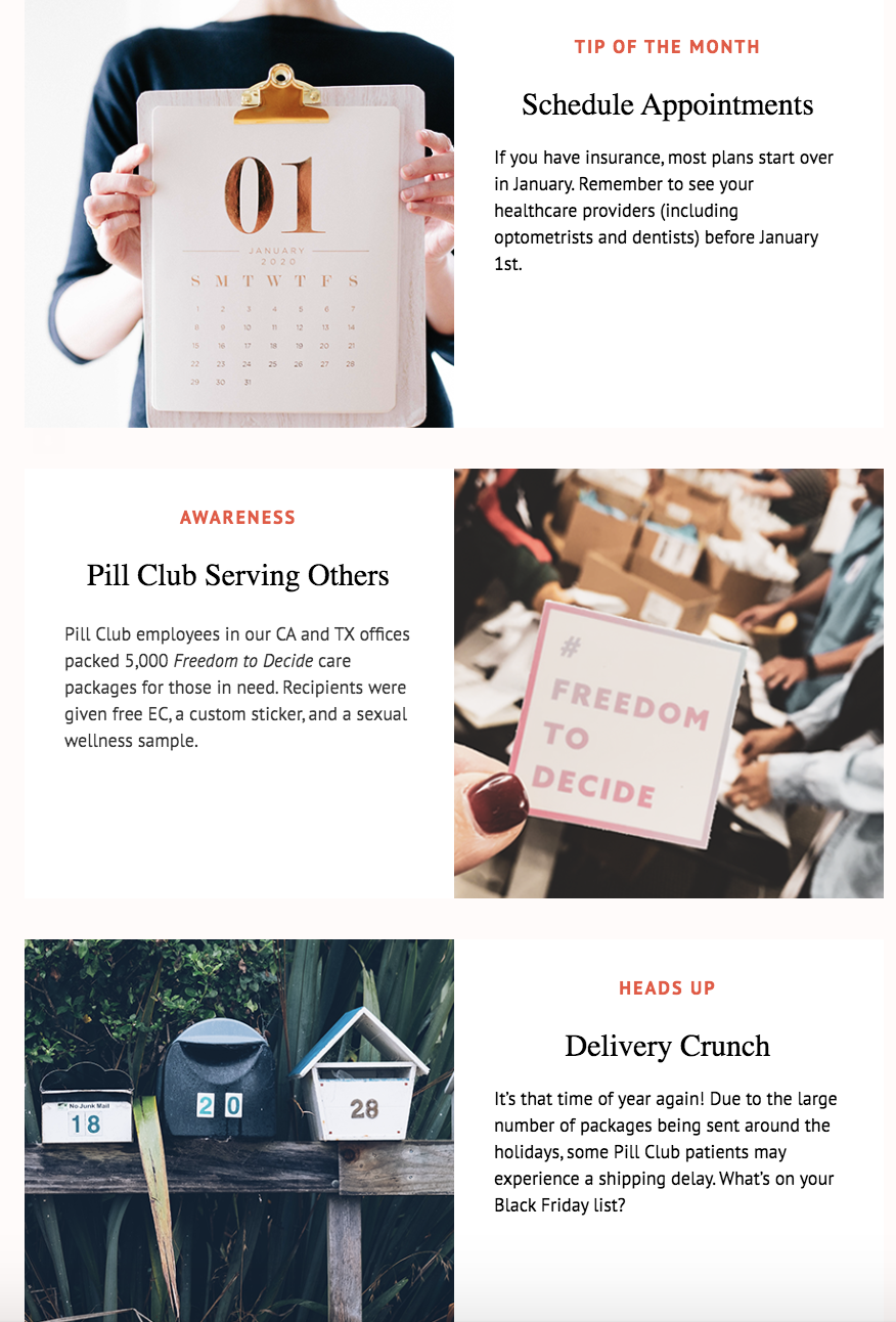 Lacks storytelling: “Pill Club has developed a voice of it’s own after the re-brand and it would be great if we can carry that over to our internal materials and set the style for future materials as the company grows.”